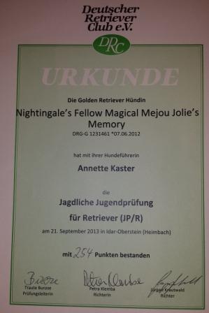 21.09.2013: Jugendprüfung für Retriever (JP/R) in Idar-Oberstein: