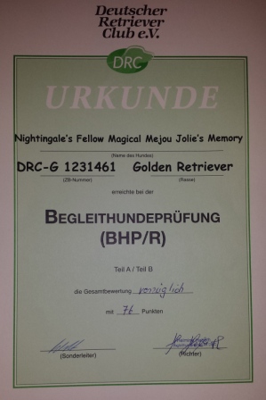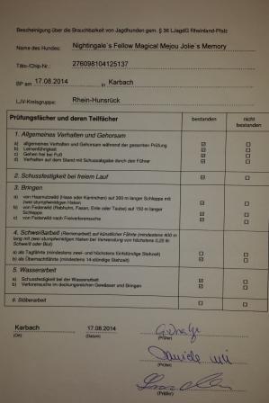 Mejou und Jolie haben beide mit 76 Pkten (Vorzüglich) bestanden und damit beide zusammen den 2. Platz belegt!