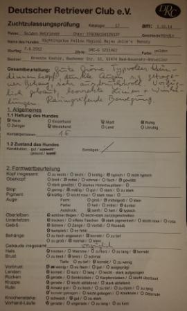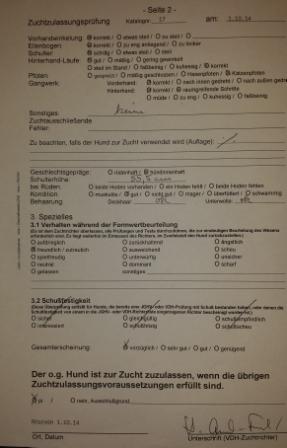 | Zuchtzulassungprüfung / Formwert: | 01.10.2014: vorzüglich | |