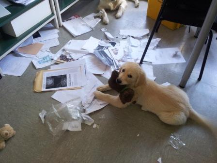 August 2012: Mejou beim Büroschlaf und nach einer Aufräumaktion mit Unschuldsmiene :-(!