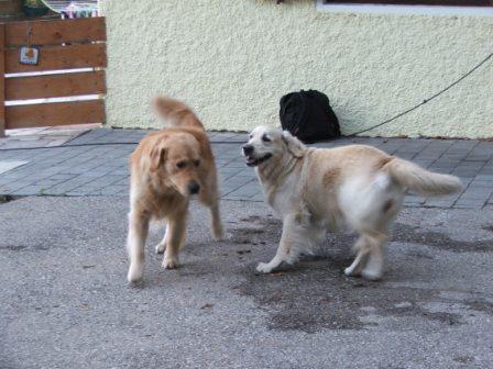 | Nach erfolgtem Deckakt trafen wir uns mit Filha und Feline und Winnie mit Paul und Bruno zum Training, während sich Dijou im Hotel ausruhte und Perdy Gesellschaft leistete. | |