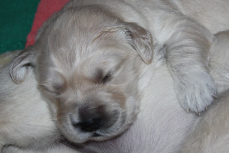 (21. Lebenstag):Heute sind wir schon 3 Wochen alt und mussten wieder zum Fototermin :-( (s. Aktueller Wurf). Mr. Green hat die 2000 gr-Marke überschritten (2100 gr). Mrs Blue und Mrs Yellow bringen beide 1840 gr auf die Waage - die anderen liegen dazwischen. Uns geht es super gut! Wir genießen die Freiheit außerhalb der Wurfkiste! 22.03.2012