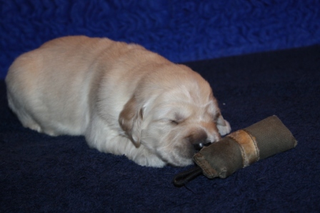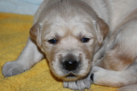 (30. Lebenstag):Bis auf Mrs Yellow haben wir nun alle die 3000 gr-Hürde genommen! Wetter war heute ziemlich mies - Daniela, Andreas und Angelina haben heute die Welpen besucht - noch ist nicht klar, wer der kleine Lennox werden wird :-)!
