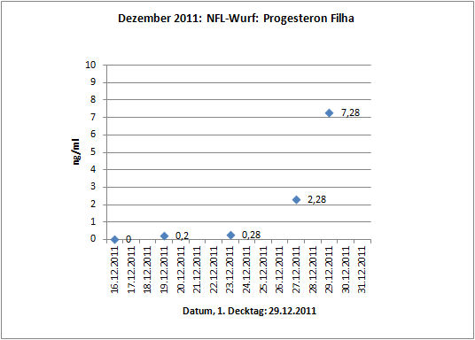 (12. Läufigkeitstag)3. Progesterontest: 2.28 ng/ml