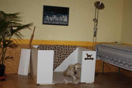 Die Wurfkiste ist aufgestellt und Filha nimmt schon mal Maß!