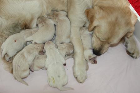 Einige Zitzen haben schon Milch! Die Erstversorgung der Welpen sollte schon mal gesichert sein!21.04.2013