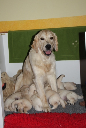 Barnaby Golden Souls by my side (http://www.golden-barnaby.de)Die Beiden haben sich super verstanden und der Deckakt hat (augenscheinlich) super geklappt! Wir hoffen, dass wir Anfang Mai gesunde, wesensfeste und hübsche Welpen bekommen! s.a: http://www.golden-barnaby.de