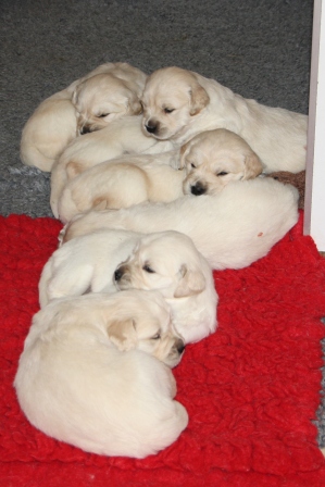 (40. Lebenstag)Annette verbringt heute den ganzen Tag in Brühl und organisiert dort eine Pfostenschau. Kiki sittet uns und versorgt auch die zukünftigen Welpenkäufer Torsten, Lindi und Piet sowie Familie Balkhausen!