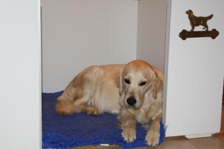 Die Wurfkiste steht schon ein paar Tage und Jolie nimmt heute erstmals Maß!27.04.2013